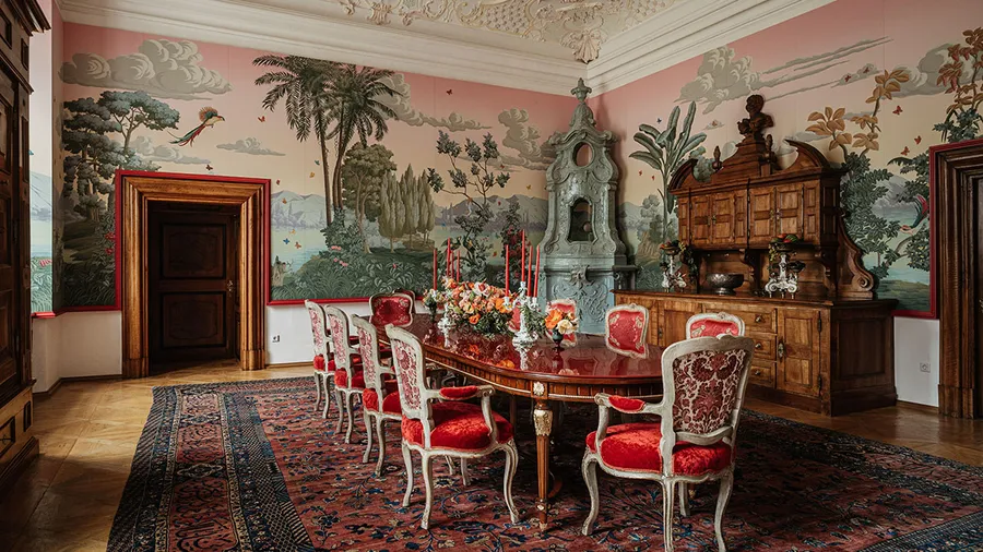Schloss Leopoldskron’s Red Salon becomes a high-design tribute to the legacy of Max Reinhardt