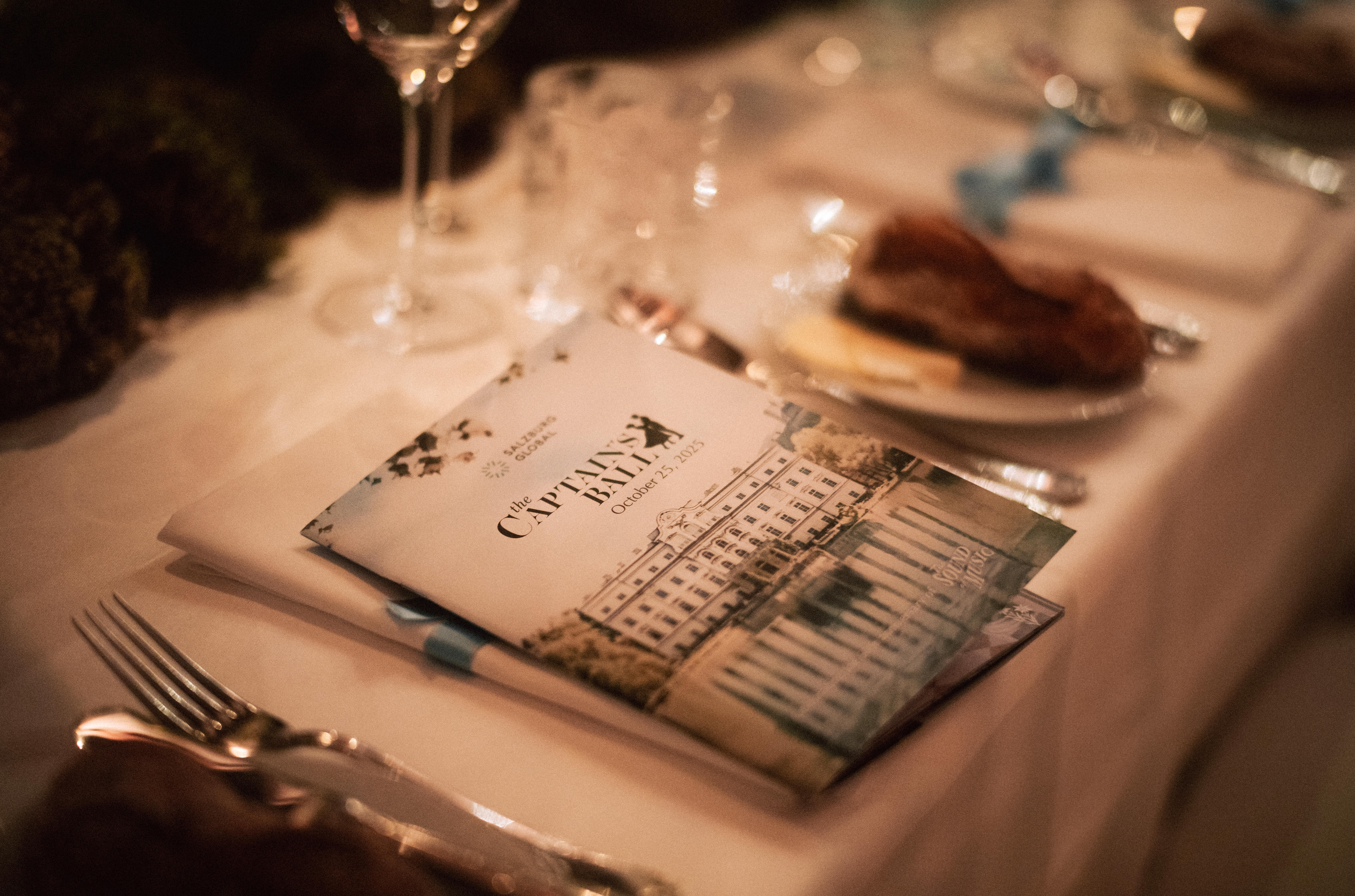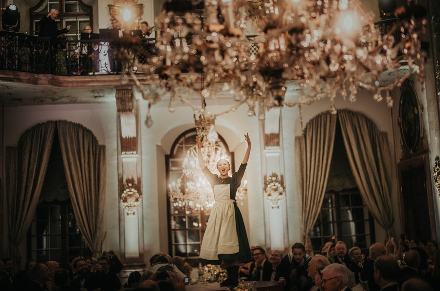 That evening, on October 25, the Schloss was once again transformed into a stage. Under the creative direction of Markus Kupferblum and the Salzburg Global team, scenes and songs from The Sound of Music unfolded throughout the building for The Captain’s Ball. From pink lemonade in the Great Hall, to the von Trapp children singing in the Marble Hall, to a grand finale in the Gallery, every corner of Schloss Leopoldskron became part of the von Trapp’s timeless story. The evening marked Salzburg Global’s first-ever fundraising gala and live auction, raising almost half a million dollars with proceeds of the event directly benefiting the conservation and development of Schloss Leopoldskron and its grounds.